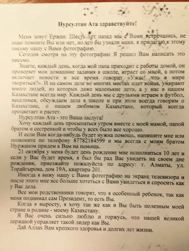 استانا. قازاقپارات - ەلباسىنى تۋعان كۇنىنە شاقىرىپ، حات جازعان 10 جاستاعى الماتىلىق ن. نازاربايەۆتان جاۋاپ الدى. بۇل تۋرالى Tengrinews.kz. حابارلادى.