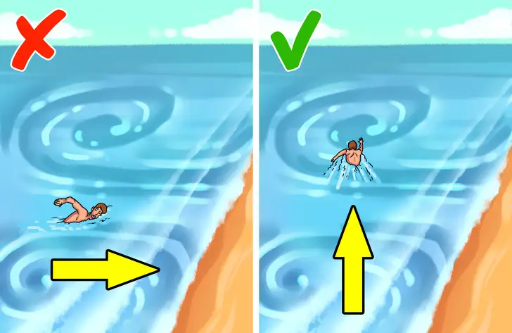 كەرى اعىنعا كەزدەيسوق تاپ بولعاندا جاعاعا قاراي جۇزۋدەن ەش پايدا جوق - ءسىز كۇشىڭىزدى بوسقا شىعىندايسىز. كەرى اعىننان شىققانشا جاعانى بويلاي (پاراللەل) جۇزۋگە تىرىسىڭىز، سودان سوڭ جاعاعا قاراي ءجۇزىڭىز.