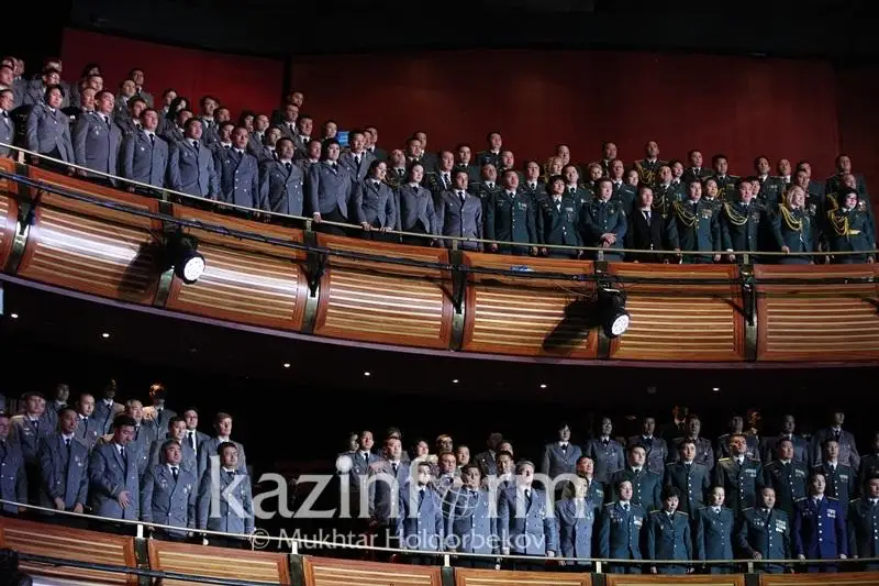 ەلباسى بۇگىنگى كونسەرتكە قازا تاپقان قىزمەتشىلەردىڭ جۇبايلارى وتىرعاندىعىن اتاپ ءوتتى.
