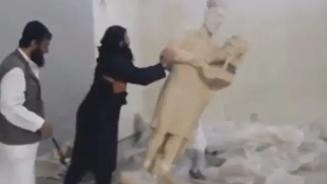 بۇل تۋرالى راديكالدار عالامتوردا جاريالاعان. بەينەتاسپادا ەكسترەميستەردىڭ 2000 جىلدىق تاريحى بار كونە مۇسىندەردى قيراتىپ جاتقانى كورسەتىلگەن.