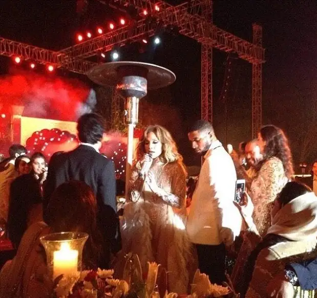 جاي عانا نەكەلەسۋ راسىمىنە 16000 استام قوناق كەلسە، ولاردىڭ ىشىندە دجەننيفەر لوپەس، نيكول شەرزينگەر سىندى انشىلەر دە بولعان. اتى الەمگە ايگىلى بۇل انشىلەرگە ساندجاي 1 ميلليون دوللاردان ۇلەستىرگەن كورىنەدى. بۇدان بولەك قوناقتارعا 208 جەكە ۇشاق قىزمەت جاساعان.