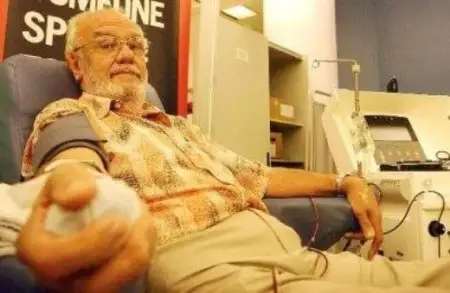 «التئن قولدئ ادام» - اؤستراليالئق پلازما دونورئ دجةيمس حارريسوندئ وسئلاي اتايدئ. جاسوسپئرئم كةزدة كةؤدة جاسؤشالارئنا بئرنةشة كذردةلئ وتالار جاساتقان بالا 13 ليتر دونورلئق قان ارقئلئ امان قالادئ. سول كةزدة بالا وزئنة كامئلةت جاسقا تولئسئمةن ةرئكتئ دونور بولام دةپ ؤادة بةرگةن ةكةن. تاعدئردئث سئيئ ما، ايتةؤئر، حارريسوننئث قانئ امبةباپ بولئپ شئعادئ. ونئث پلازماسئنان جذكتئلئك كةزئندةگئ رةزؤس-كونفليكتتةردئث الدئن الاتئن، بولاشاق ذرئقتئ ساقتايتئن جانة ءومئر سئيلايتئن انتيتةلا تابئلعان. قازئر 78 جاستاعئ قارت ءاربئر 3 اپتاي سايئن 40 ميلليليتر قان تاپسئرادئ. 60 جئل ئشئندة بذل سان 1000 ةسةگة كوبةيدئ. وسئ ؤاقئتتا دجةيمس حارريسون 2 ميلليون جاس انالار مةن بوبةكةردئ قذتقارئپ قالعان.