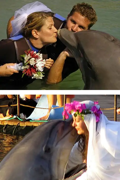 3. شارون تەندلەر ەسىمدى يەۆرەي ايەل يزرالدەگى دەلفين ساياباعىندا كيندي ەسىمدى ءبىر دەلفيننىڭ ەركەگىنە عاشىق بولادى. ءوزىنىڭ «عاشىعىن» كورۋ ءۇشىن ول بۇل ساياباققا 14 جىل بويى بارىپ تۇرعان ەكەن. سوڭىندا دەلفين ۇيرەتۋشىنىڭ «جەڭگەتايلىعىمەن» شارون دەلفينگە سەزىمىن ءبىلدىرىپ، ۇسىنىسىن ايتىپ، ۇيلەنۋ تويلارىن جاسايدى.