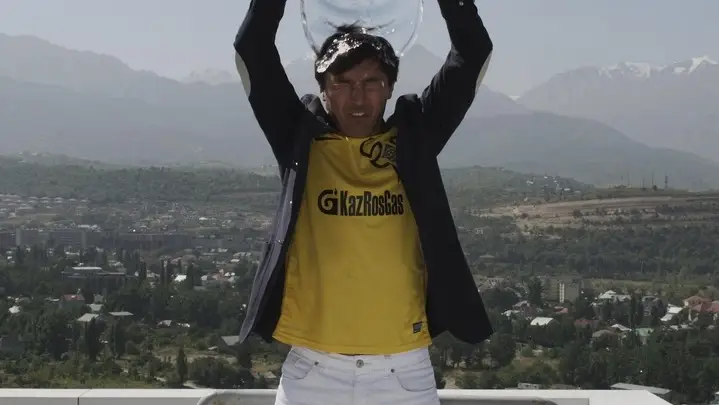 ال «بارىس» حووكەي كلۋبىنىڭ ويىنشىسى كيەۆين داللمەن جاتتىعۋدان كەيىن مۇز ايدىنى ۇستىندە دەنەسىن جالاڭاشتاپ، 1 شەلەك سۋدى توبەسىنەن اقتارا سالدى.