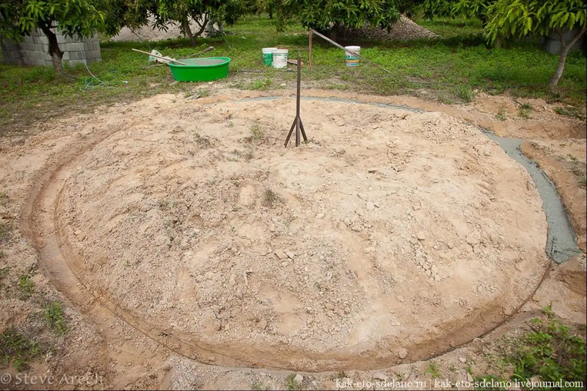 سىزىلعان شەڭبەردىڭ جيەگى قازىلىپ، سەمەنت قۇيىلادى دا، ىرگەتاس جاسالادى.