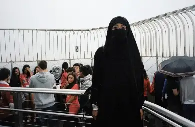 «ساياحاتشىلار جابايى ادام كورگەندەي ۇركىپ قالدى. ەندى بىرەۋلەرى مەنىمەن سۋرەتكە تۇسكىلەرى كەلەتىندىگىن ايتىپ جاتتى. ال ەندى بىرەۋلەرى «تەرروريست بولۋى مۇمكىن» دەگەندەي ماعان ساقتىقپەن قارايدى.
