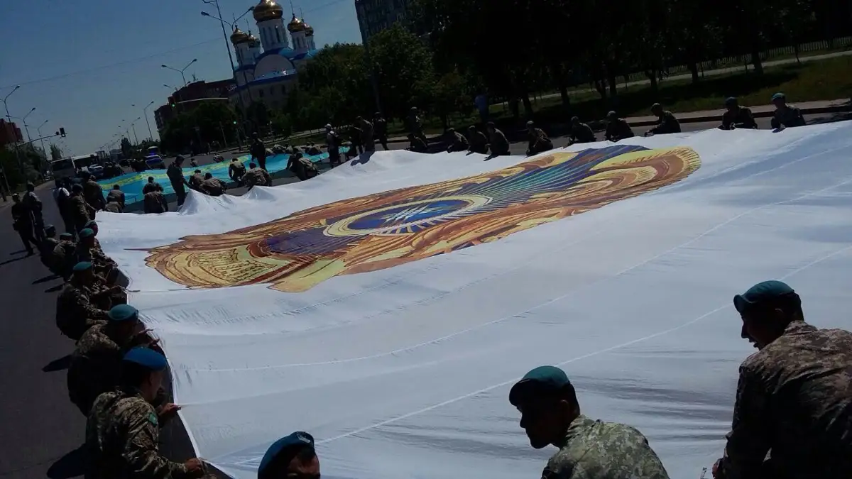 استانا كوشەلەرىندە جاستار قازاقستاننىڭ ەڭ ۇلكەن بايراعىن الىپ ءجۇردى - فوتو