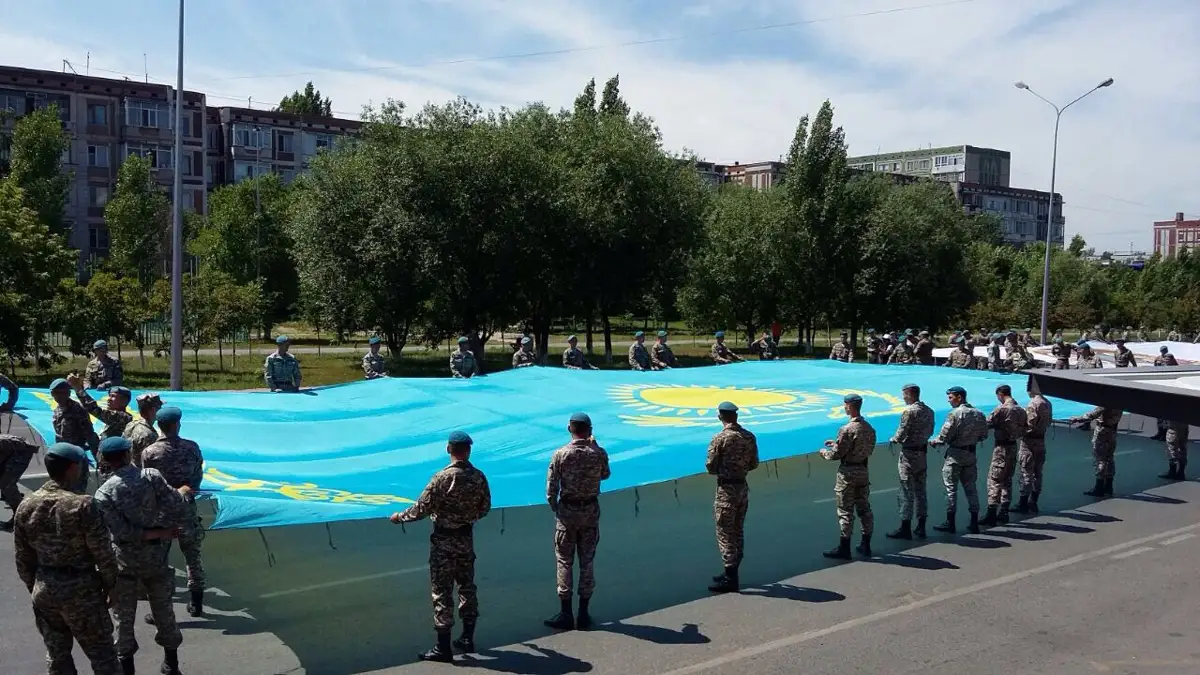 استانا. قازاقپارات - استانا كوشەلەرىمەن قازاقستاننىڭ مەملەكەتتىك تۋى الىپ ءوتىلدى.