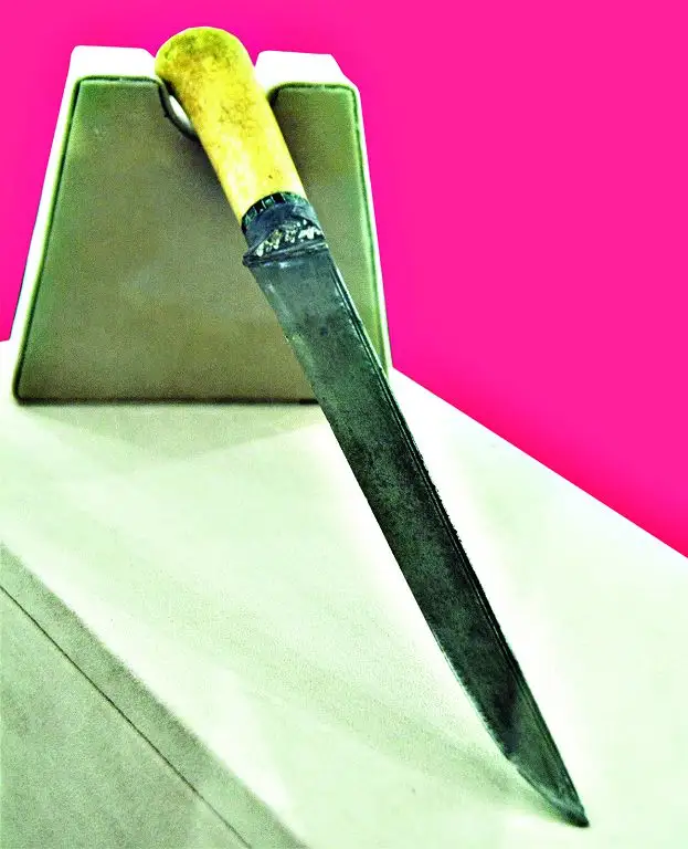 وسىندا ورنالاسقان ەكسپوناتتار اراسىنان داڭقتى باتىر بابامىز قاراكەرەي قابانبايدىڭ قانجارىن كوزىمىز شالىپ قالدى.