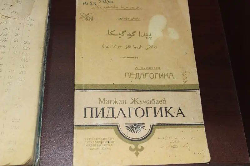 «بۇل ءبىزدىڭ اۋدانداعى اقىننىڭ جالعىز كىتابى. ول توڭكەرىسكە دەيىن اراب جازۋىمەن باسىپ شىعارىلعان. ماعجان جۇمابايەۆتىڭ 1924 -جىلى شىققان «پەداگوگيكا» كىتابىنىڭ ديزاينەرلىك كوشىرمەسى بار. ونىڭ ءتۇپنۇسقاسى تۇركىستاندا ساقتاۋلى. تاعى ءبىر تاماشا ەكسپوناتىمىز بار، ول - اقىن ماعجاننىڭ لاتىن گرافيكاسىمەن جازىلىپ، تۇركيادا باسپا بەتىن كورگەن كىتابى»، - دەيدى سەرىك جۇماعۇلوۆ.