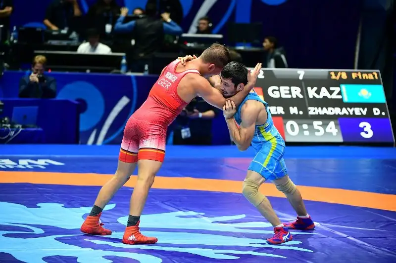 قازاق بالۋاندارىنىڭ اراسىنان العاش بولىپ كىلەمگە شىققان 72 كەلىدەگى دەمەۋ جادىرايەۆ ءبىرىنشى بەلدەسۋىندە جەڭىسكە جەتكەن بولاتىن. وكىنىشكە قاراي، 2- كەزدەسۋىندە گەرمانيالىق قارسىلاسىنا 4:3 ەسەبىمەن ەسە جىبەردى.