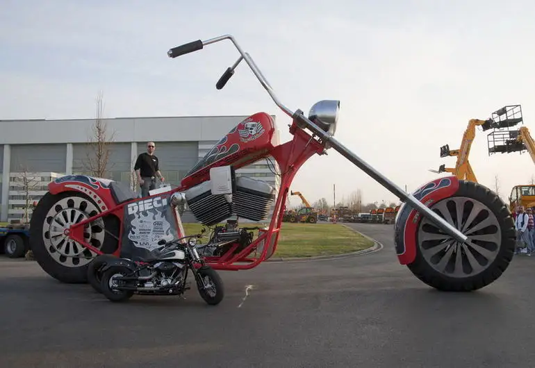 يتالياندىق مەحانيك- ديزاينەر فابيو رەدجياني الەمدەگى ەڭ ۇلكەن موتوسيكلدى جاساپ شىعاردى. ونىڭ بيىكتىگى 5 مەترگە جەتەدى. ونى قۇرۋ ءۇشىن يتالياندىقتىڭ ءوزى جانە ونىڭ كومانداسى 7 اي ۇزدىكسىز جۇمىس جاساعان.