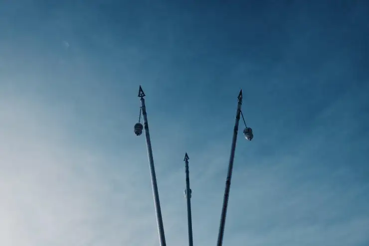 ءبىز كەسەنەگە جاقىندادىق. سامميدين كىرەبەرىستەگى ورناتىلعان الىپ نايزالارعا نازار اۋدارۋىمدى سۇرادى.
