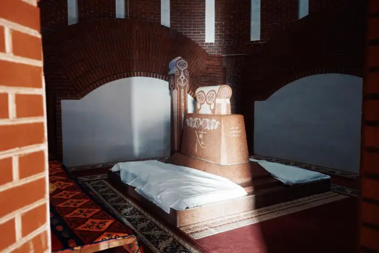 «قازاقتىڭ ءداستۇرى بويىنشا قابىرگە وسىنداي تاستار قويىلعان. بىرەۋى وسىندا باتىر جەرلەنگەنىن، ال ەكىنشىسى مۇندا اۋليە ادام جاتقانىن بىلدىرەدى»، - دەپ تۇسىندىرەدى ول قاراڭعى دالىزبەن ءوتىپ بارا جاتىپ.
