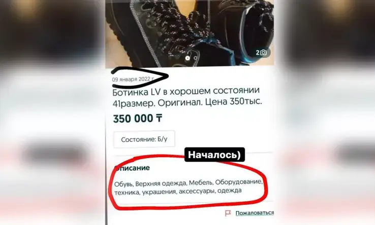جارنامانىڭ بىرىندە 350 مىڭ تەڭگەگە قىمبات اياق كيىم ساتىلىمعا قويىلعان. سونداي- اق وندا اياق كيىمنەن باسقا، جيھاز، تەحنيكا، اشەكەيلەر مەن بۇيىمدار ساتىلادى دەپ جازىلعان. كەيبىر تاۋارلار نارىقتاعى قۇنىنان الدەقايدا ارزانعا ساتىلىپ جاتقان كورىنەدى. بەلگىلى بولعانداي، جارنامالاردى كوبىنە الماتى وبلىسى، الماتى قالاسى مەن جامبىل وبلىسىنىڭ تۇرعىندارى بەرگەن.