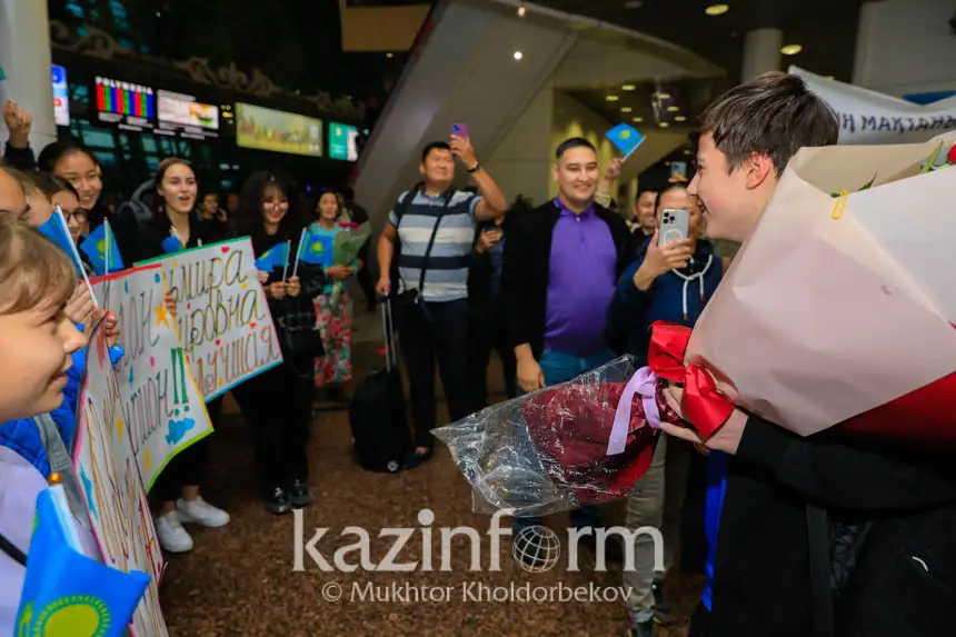 جۇرتشىلىق جاس سپورتشىنى اۋەجايدان شاشۋ شاشىپ، دومبىرامەن ءان ايتىپ، ەرەكشە كوڭىل- كۇيمەن كۇتىپ الدى.