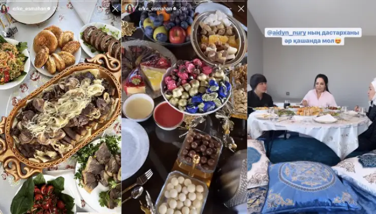 «قوناققا كەلدىك. كىرەبەرىستە وسىنداي ادەمى گۇلدەر، قانداي ادەمى ءۇي! قونىس جايلى بولسىن، تويدى جالعاستىرىپ، تويلاۋعا كەلىپ قالدىق»، - دەگەن ەدى ءانشى Stories-ىندە.