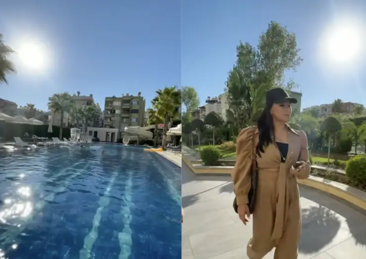 «وتباسىلىق دەمالىسىمىزدىڭ بىتۋىنە از ۋاقىت قالدى. ونى ايتورەنىڭ تۇرىنەن بايقاۋعا بولادى، كەلەسى سۋرەتتە. بۇل جولى الانياعا كەلۋىمنىڭ سەبەبى ءبىز پاتەر العان قۇرىلىس كومپانياسىنا جارناما ءتۇسىرۋ بولدى. اللاعا شۇكىر ءبارى ىسكە استى»، - دەپ جازدى اكتەر.