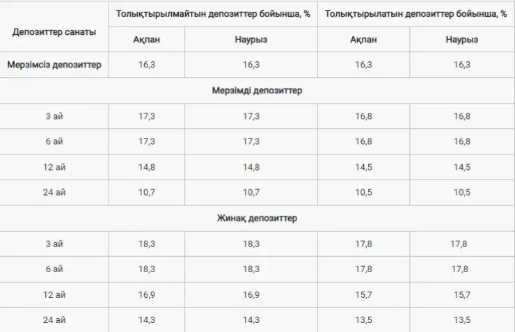 دەپوزيتتىڭ ءتۇرى مەن مەرزىمدىلىگىنە سايكەس ق د ك ب ق شەكتى مولشەرلەمەسى مىنا كەستەدە كورسەتىلگەن: